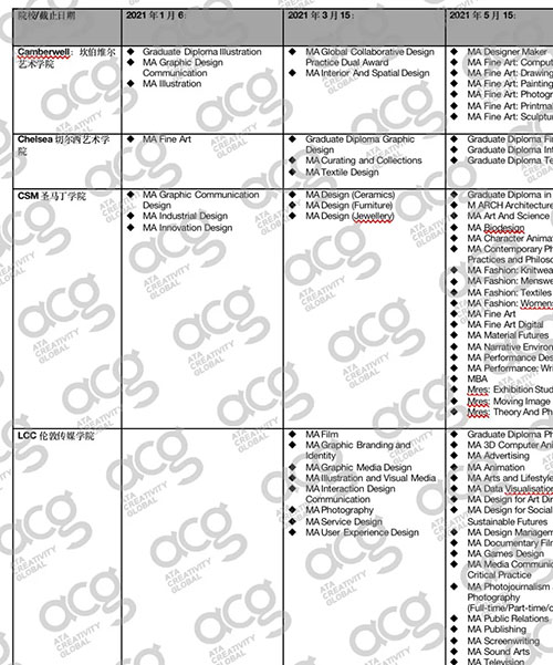 UAL硕士和硕士预科的课程申请时间比较复杂,我们帮大家整理如下表格:
