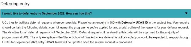 Tip:切记UCL不允许第二次延期。如果有同学去年已经defer了一次,但仍无法在2021年9月开始学习的话,将被撤销offer,需重新在2021年11月开始申请次年的入学。