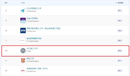 在2022年QS世界大学建筑与建造环境专业排名中,位居世界NO.10,欧洲排名NO.5。
