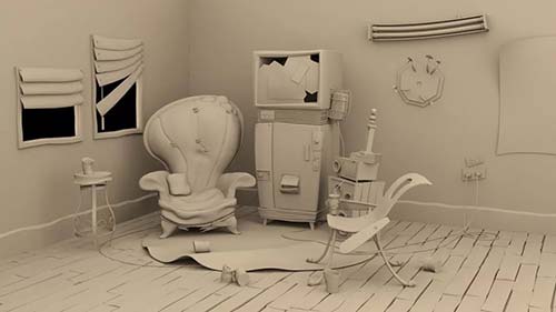 在Maya软件中制作该场景中的道具简模、调整造型;添加细节等。